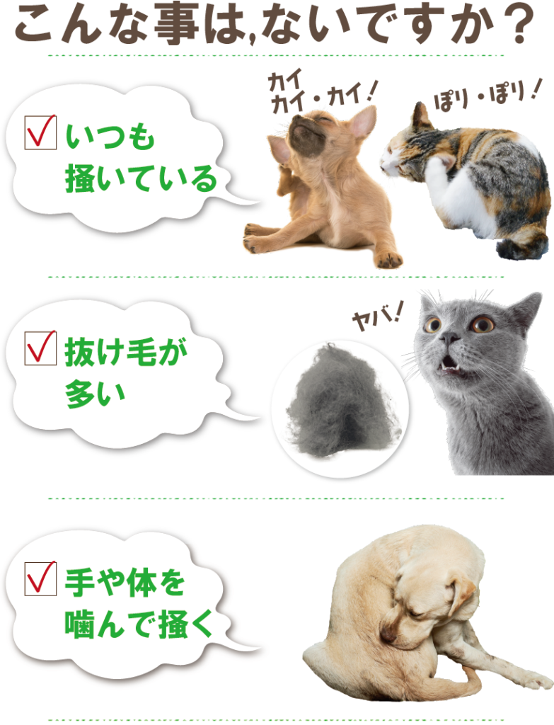 アレルギーや皮膚トラブルに負けない体を作ることがカイカイには大切。