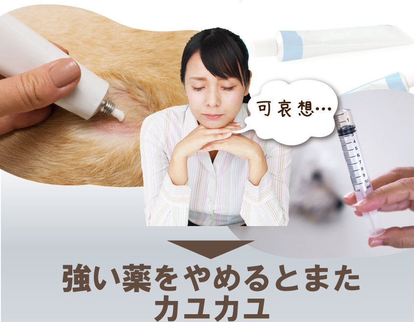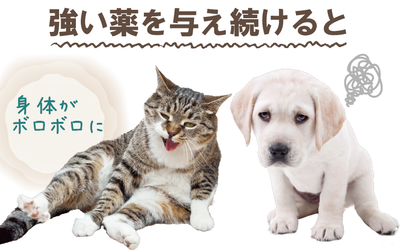 この商品は「完全無添加」なので、強い薬を与え続けていた愛犬や愛猫の